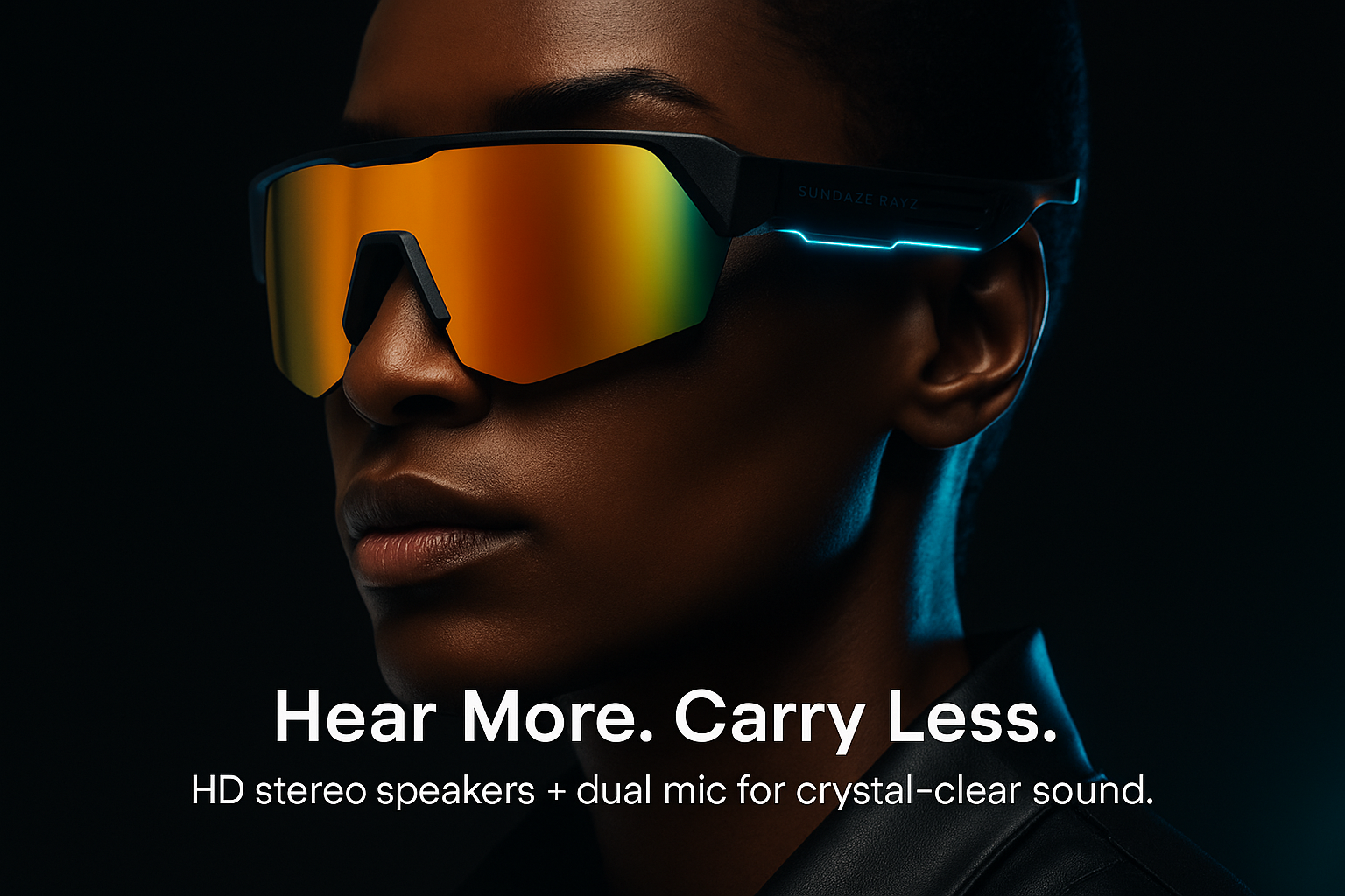 Stand out with the Astrid Smart Audio Sunglasses, featuring TAC polarized lenses with a gold–amber front and aqua-blue edges. This dynamic mirror finish not only blocks glare but also adds a bold, futuristic vibe that shifts with the light. Built for performance and style, Astrid makes every run, ride, or beach day unforgettable. Stay connected without missing a beat!